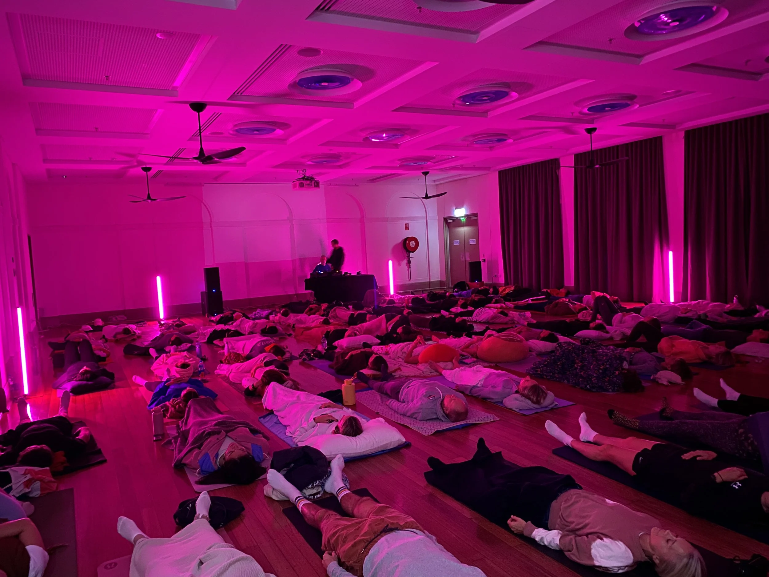 Guided breathwork and immersive sound for students and staff. Practical sessions to reduce stress, enhance focus, and strengthen wellbeing in higher education.