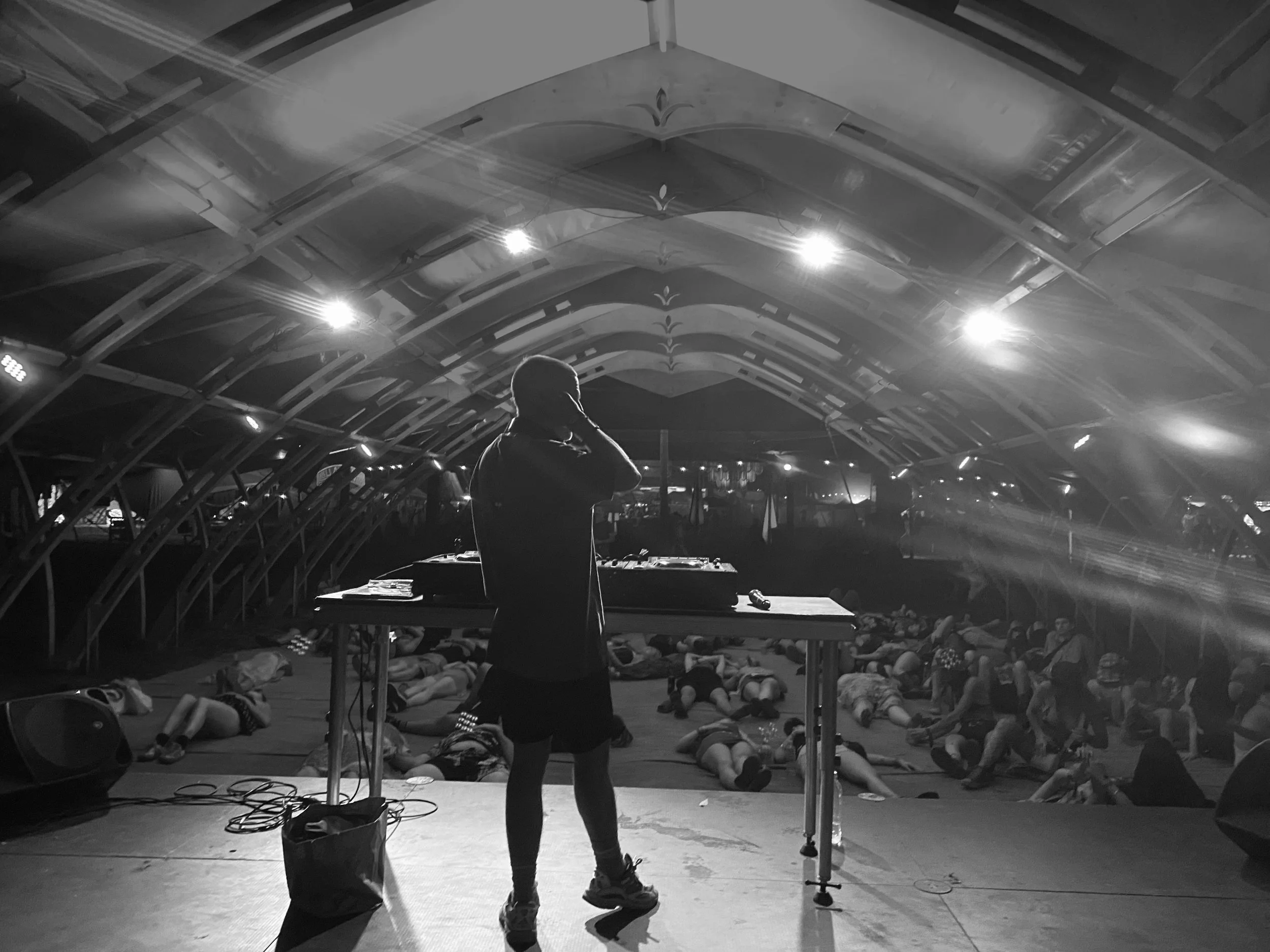 Simple breathing techniques and immersive sound with live ambient DJing